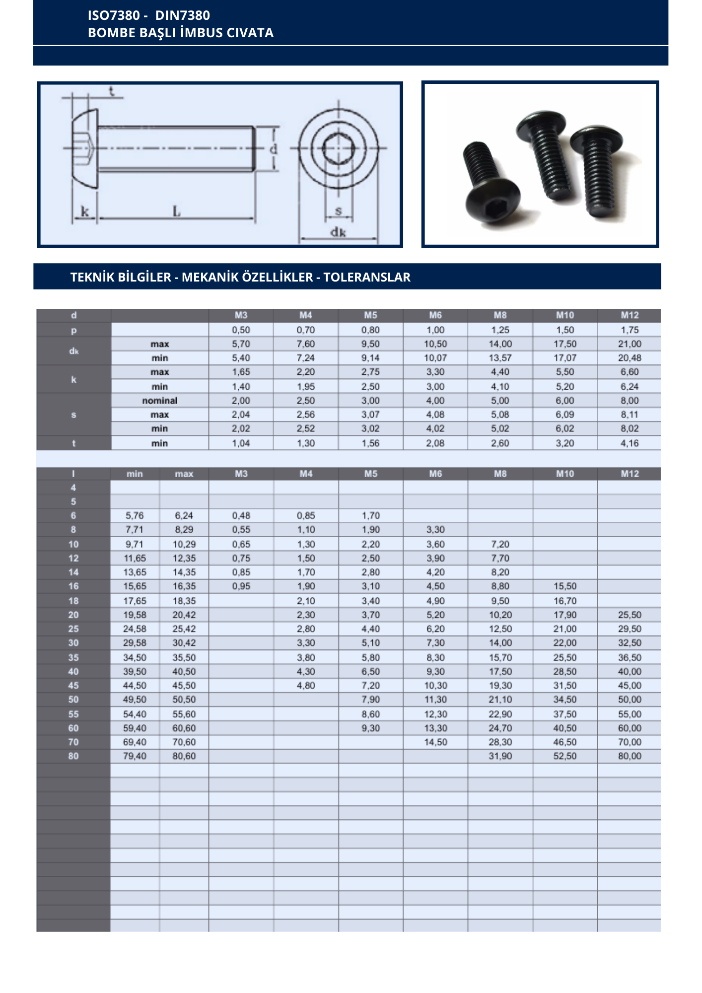 DIN7380 BOMBE BAŞLI İMBUS CIVATA
