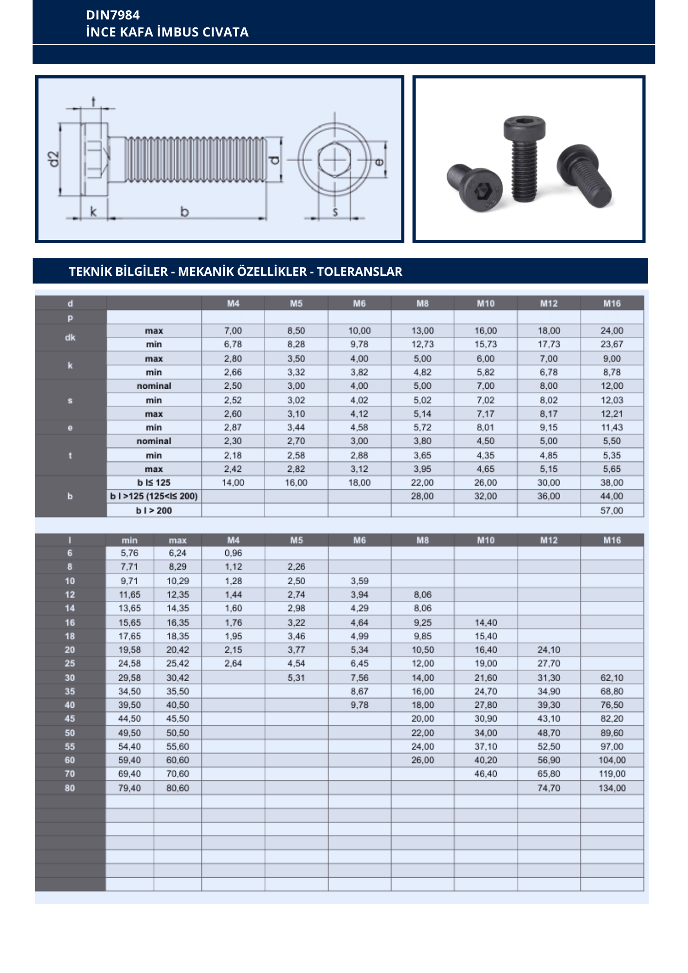 DIN7984 İNCE KAFA İMBUS CIVATA