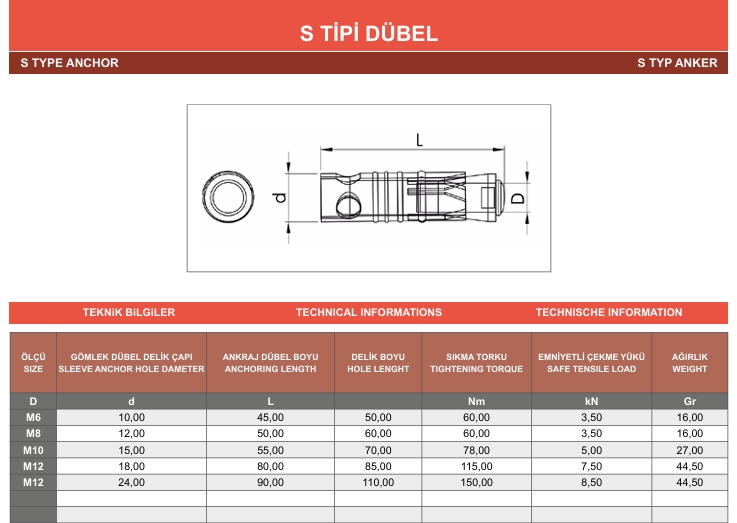S TİPİ ÇEKMELİ DÜBEL