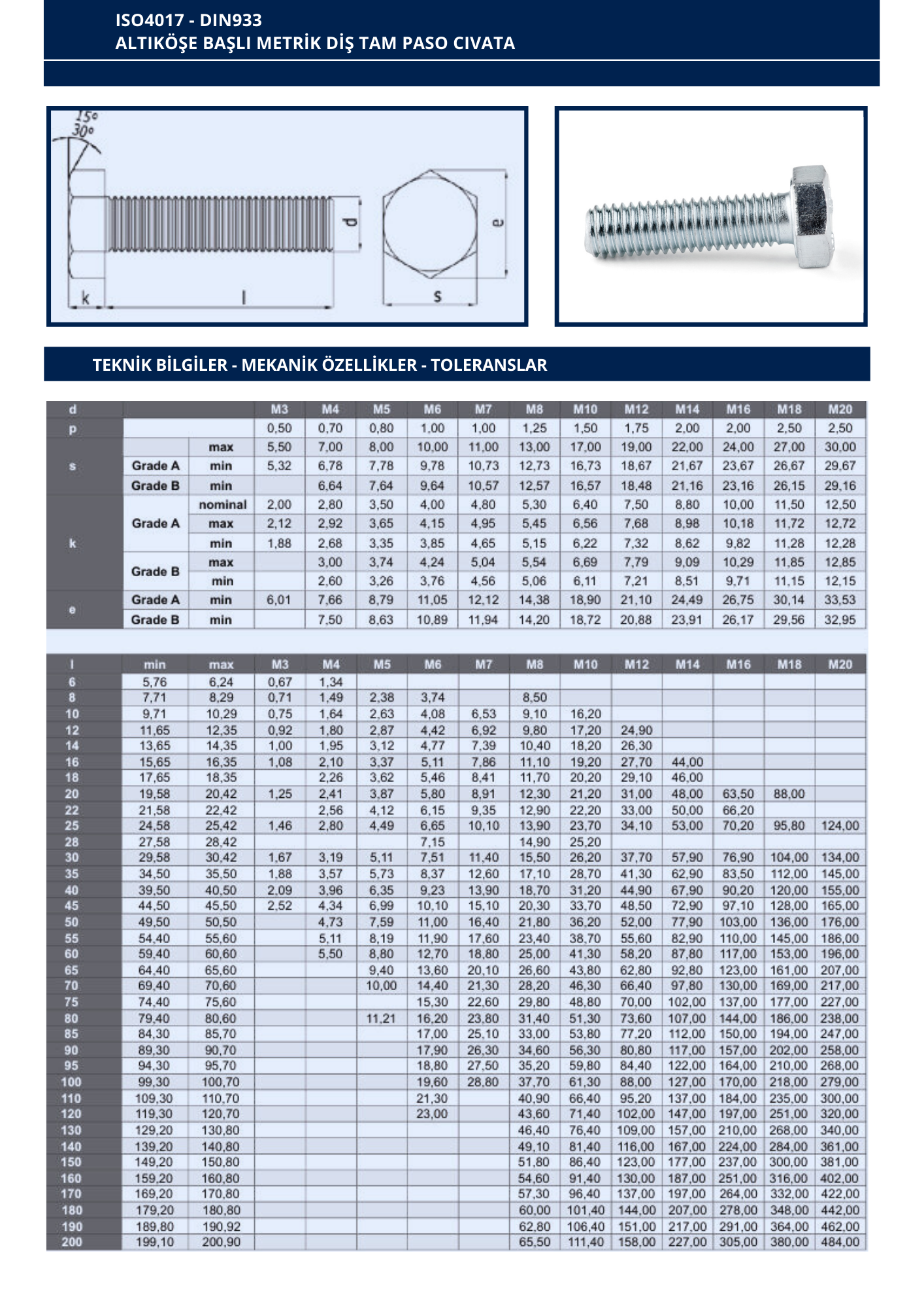 DIN933 ALTIKÖŞE BAŞLI METRİK DİŞ TAM PASO CIVATA